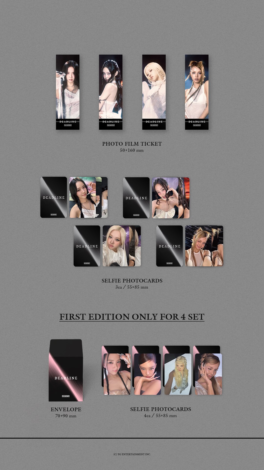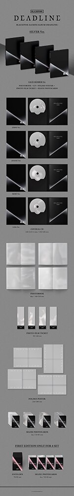 BLACKPINK 3rd MINI ALBUM [DEADLINE] GRAY Ver.はメンバー別フォトプリント、団体ポストカード、グラフィックステッカー、セルフィーフォトカード、クレジットポストカード、スクラッチメッセージカードなどの多彩な構成内容。