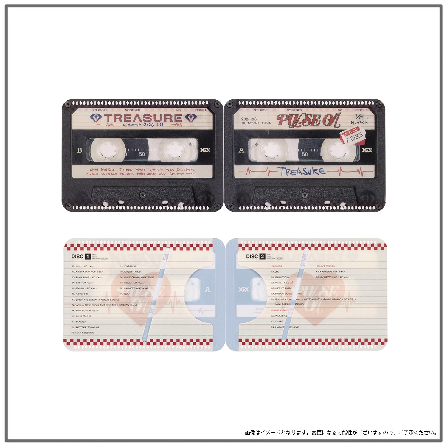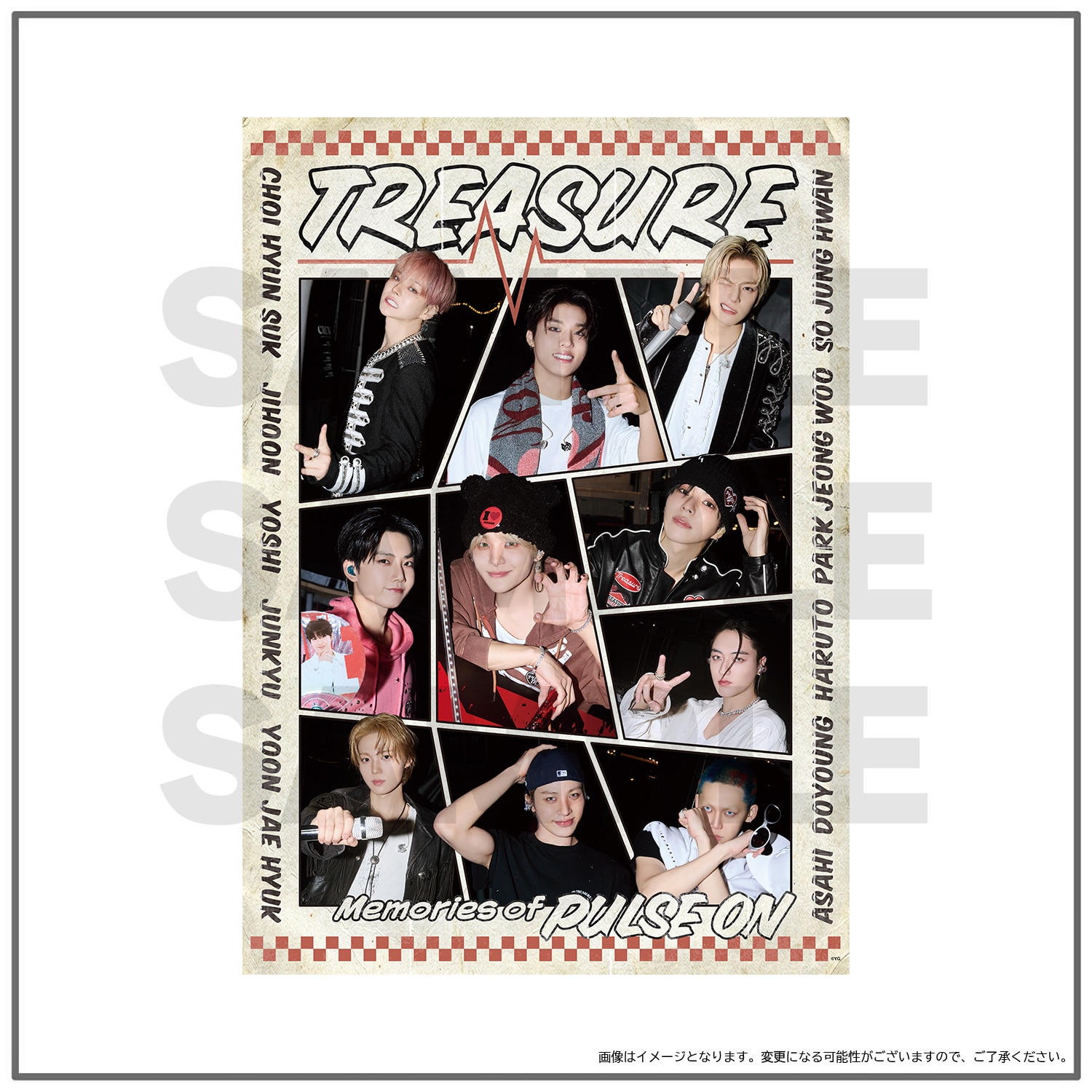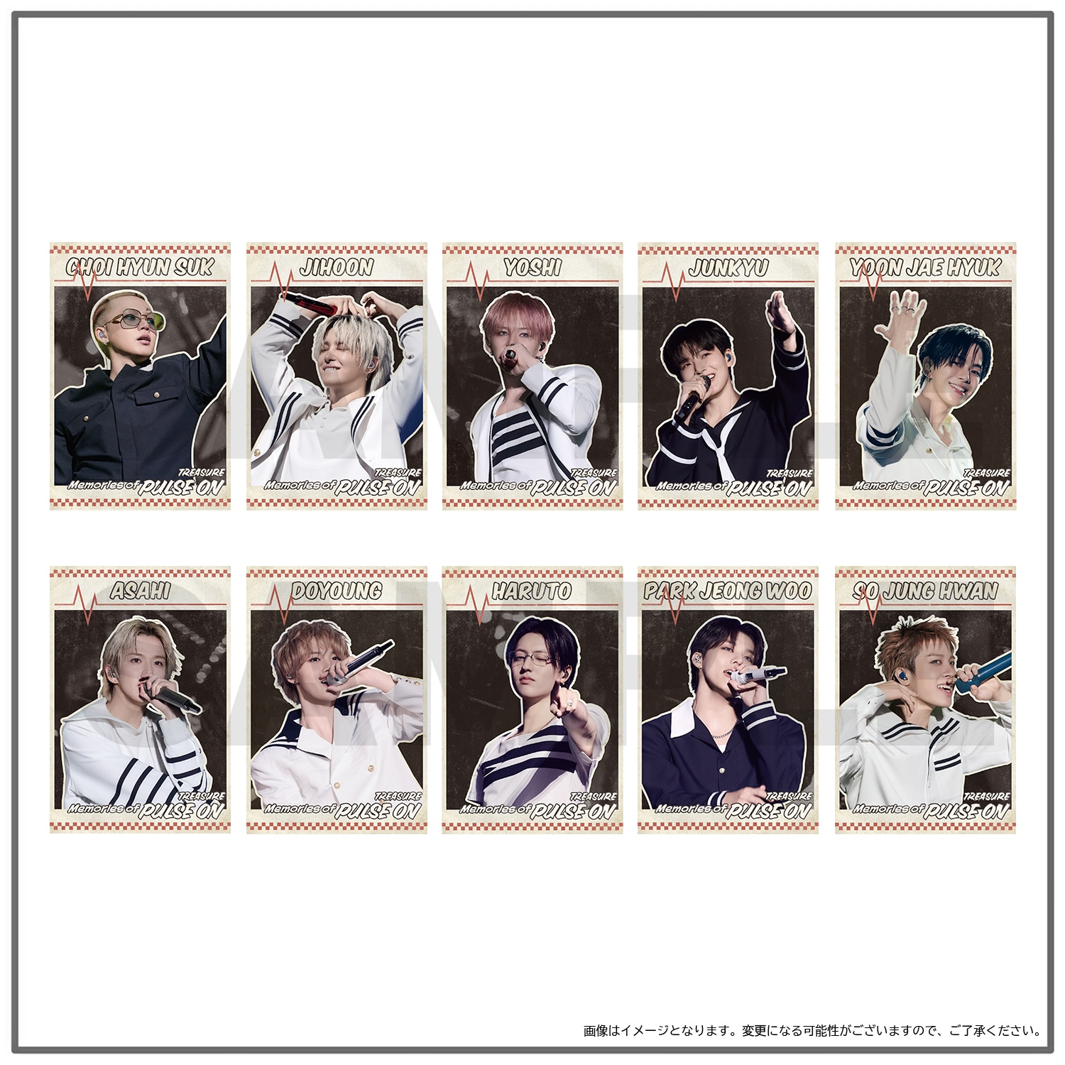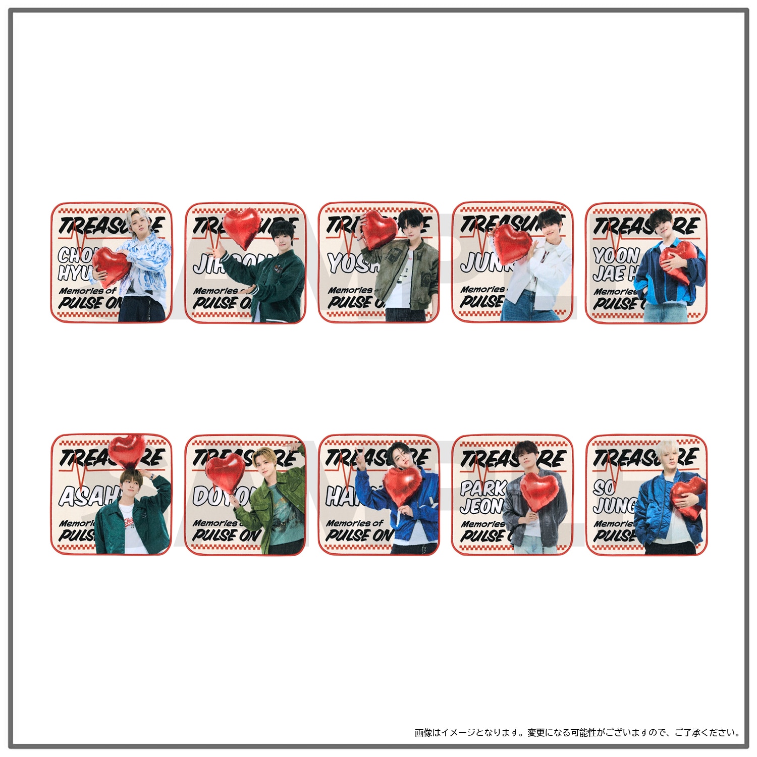 『2025-26 TREASURE TOUR [PULSE ON] IN JAPAN』 GOODS、TREASUREぬいぐるみ(LOVE PULSE ver.)、『TREASURE×HAPIDANBUI』コラボレーションGOODS、Memories of [PULSE ON] GOODSを8,000円(税込)お買い上げごとにフォトカード(ランダム全10種)を1枚プレゼント!(プレゼント枚数上限なし)