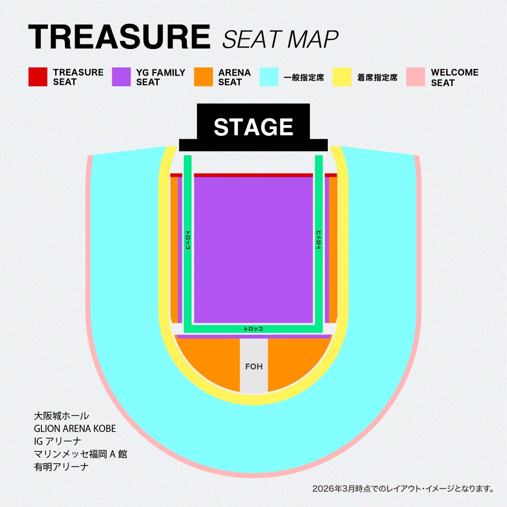 ※TREASURE SEATは公演日当日のご入場時に、TREASURE GLOBAL OFFICIAL FANCLUB TREASURE MAKER MEMBERSHIP (JP) SITEで入会日の確認がございます。