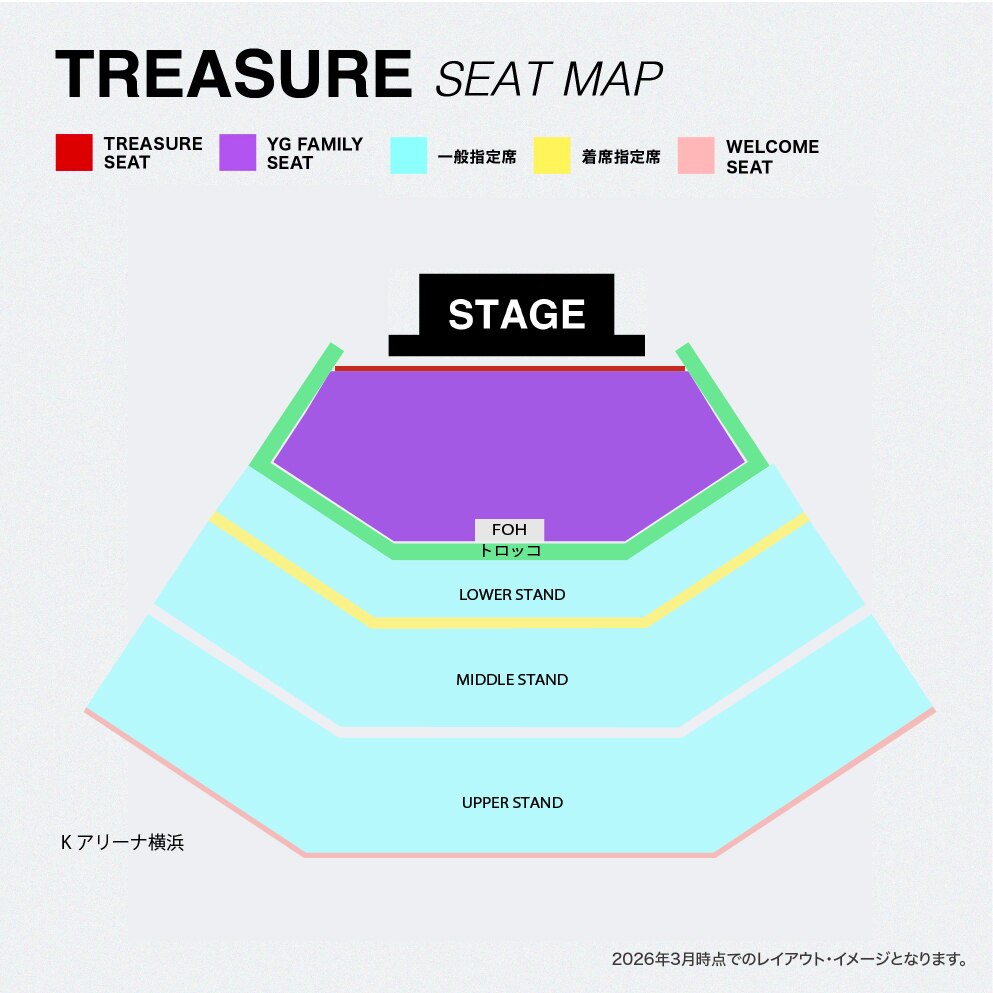※TREASURE SEATへのアップグレードをご希望の方は必ず下記「<TREASURE SEAT><YG FAMILY SEAT>アップグレードについて」をご確認の上、同行者も全てTREASURE MAKER MEMBERSHIP (JP)を2年以上継続されている会員の方のみでお申し込みください。